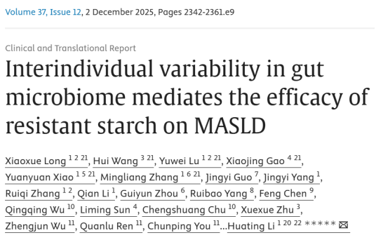 不过,一篇发表于相关权威期刊的研究《Interindividual variability in gut microbiome mediates the efficacy of resistant starch on MASLD》,为我们带来了温和护肝的新方法: