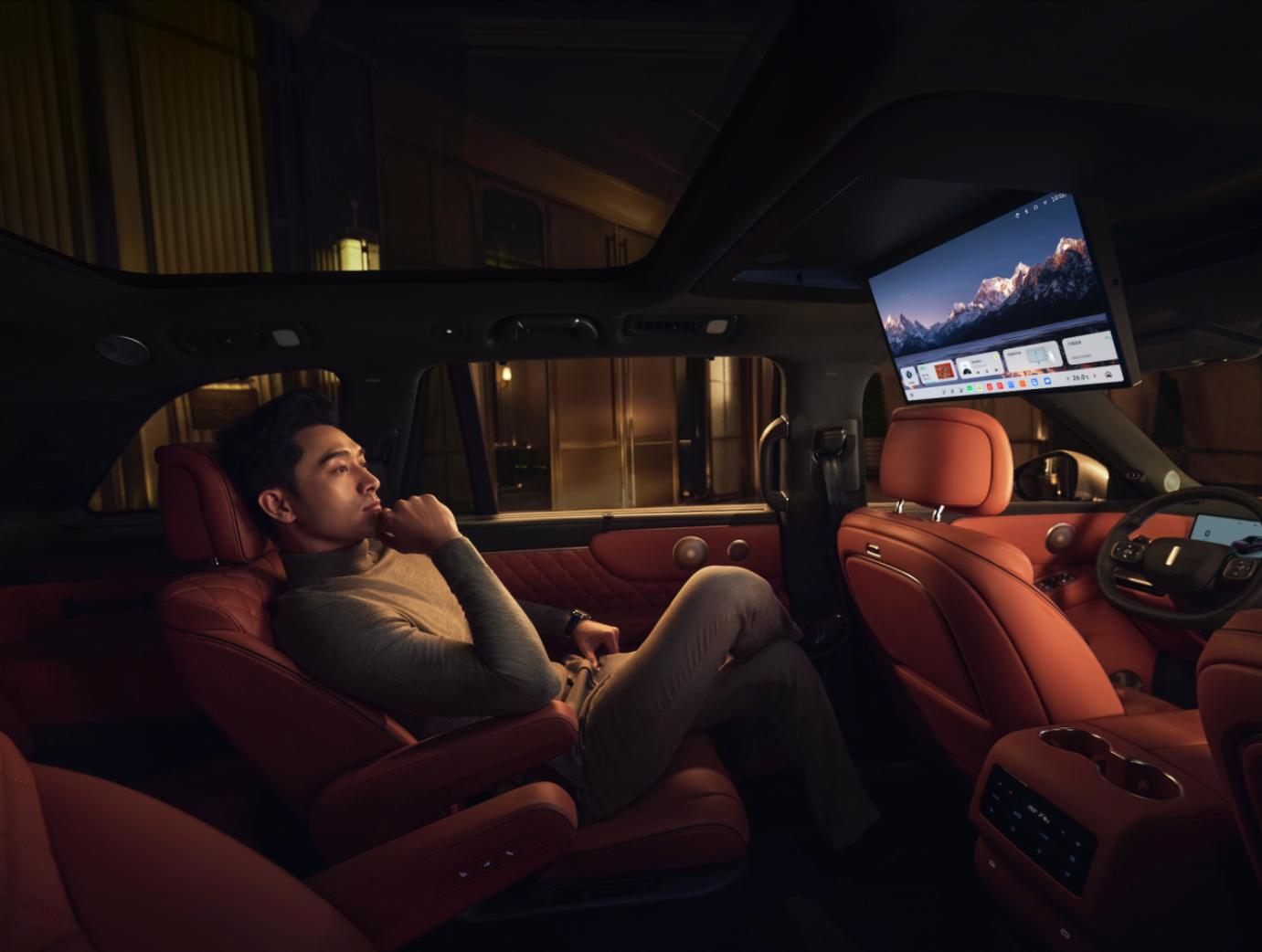 智能方面,V9X首发搭载基于双VLA大模型的原生AI舱驾智能体,以“驾辅左脑”与“座舱右脑”构建类人智能架构,使驾驶辅助与座舱系统达成深度协同。车内还搭载21.4英寸4K吸顶屏,座舱面料添加红外反射涂层以降低夏季表面温度。