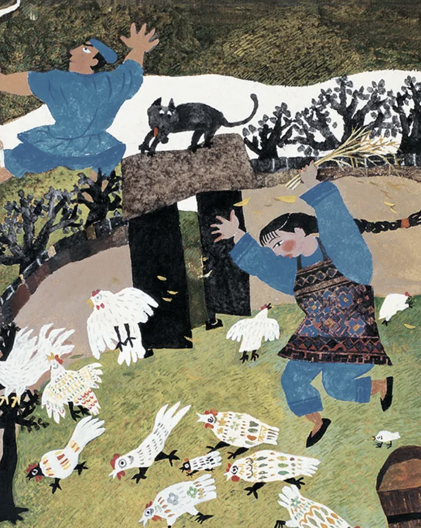 蔡皋的艺术创作极具多元性与融合力,她的作品深深扎根中华传统文化,以水墨晕染的东方意境为底色,融入质朴鲜活的民间美学,更以温暖治愈的儿童视角为核心,巧妙重构民间传说、经典文学与与生活日常。