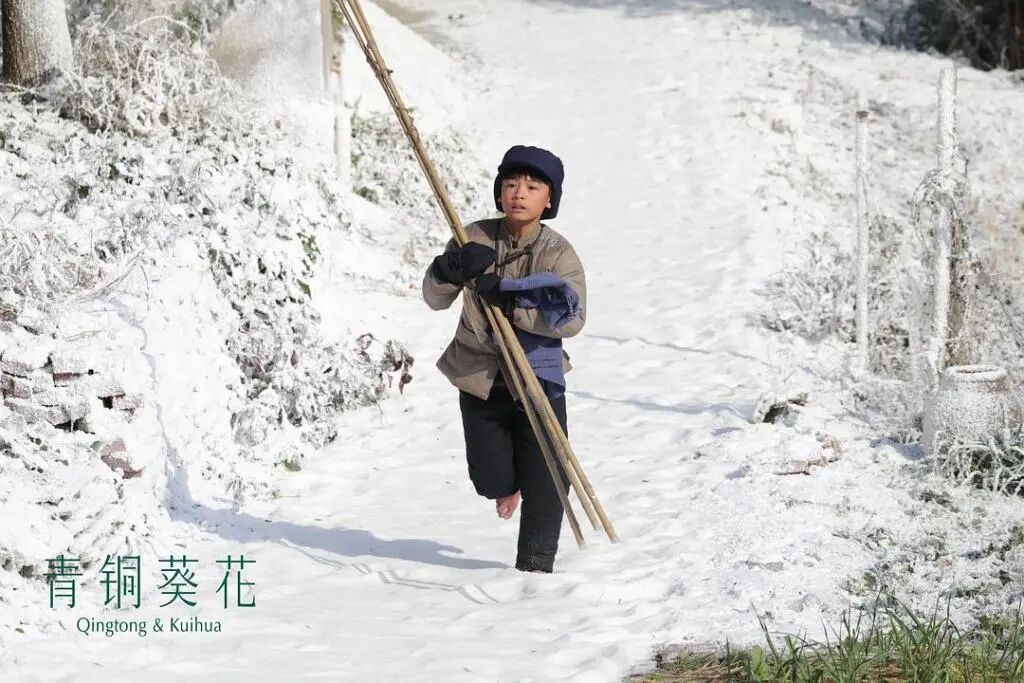 青铜与葵花在苦难中展现出的“很会爱人的能力”让人动容,青铜本是个能言善辩的孩子,五岁时因一场大火受惊高烧,退烧后成了哑巴。他用沉默的姿态守护着这个家:把上学的机会用抓阄的小心机让给妹妹;寒冬腊月踩着积雪去卖全家手编的芦花鞋,最后连自己脚上那双也卖了,赤脚踏着冰碴回家;他为妹妹做南瓜花灯,又费尽心思制作冰项链。在这个处处捉襟见肘的家里,青铜的爱渗入日常每一个细节。