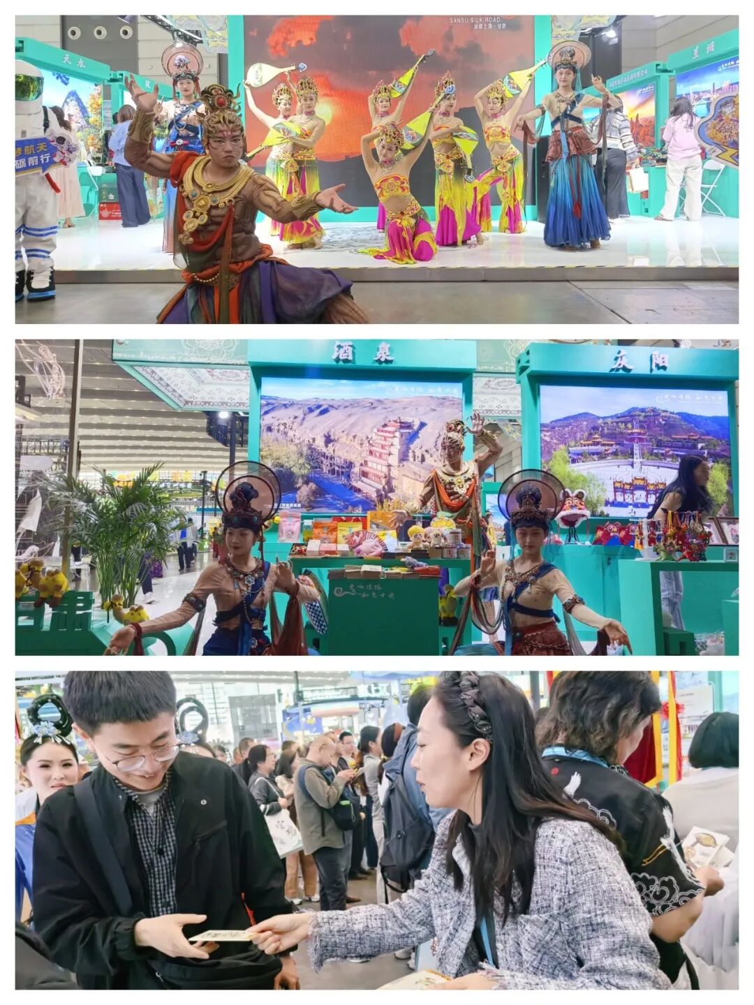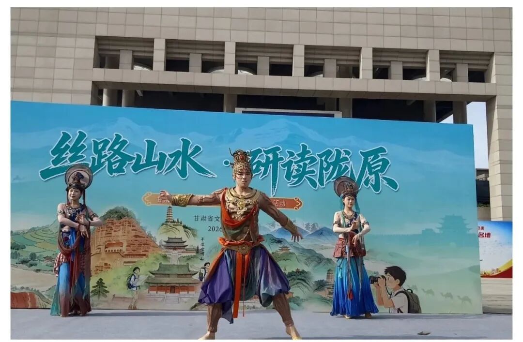 活动期间,《千年莫高・乐动敦煌》《反弹琵琶》《千手观音》等精品演艺惊艳亮相,演职人员先后走进西安丝绸之路国际旅游博览会、文旅地标、高校校园及“交响丝路・如意甘肃” 品牌冠名列车,开展多场沉浸式快闪展演。飞天翩跹、金刚怒目,乐舞悠扬,将敦煌壁画艺术生动呈现在观众眼前,吸引大批市民游客驻足观看、拍照打卡互动、刷屏传播,成为本次活动中极具辨识度与传播力的敦煌文化名片。
