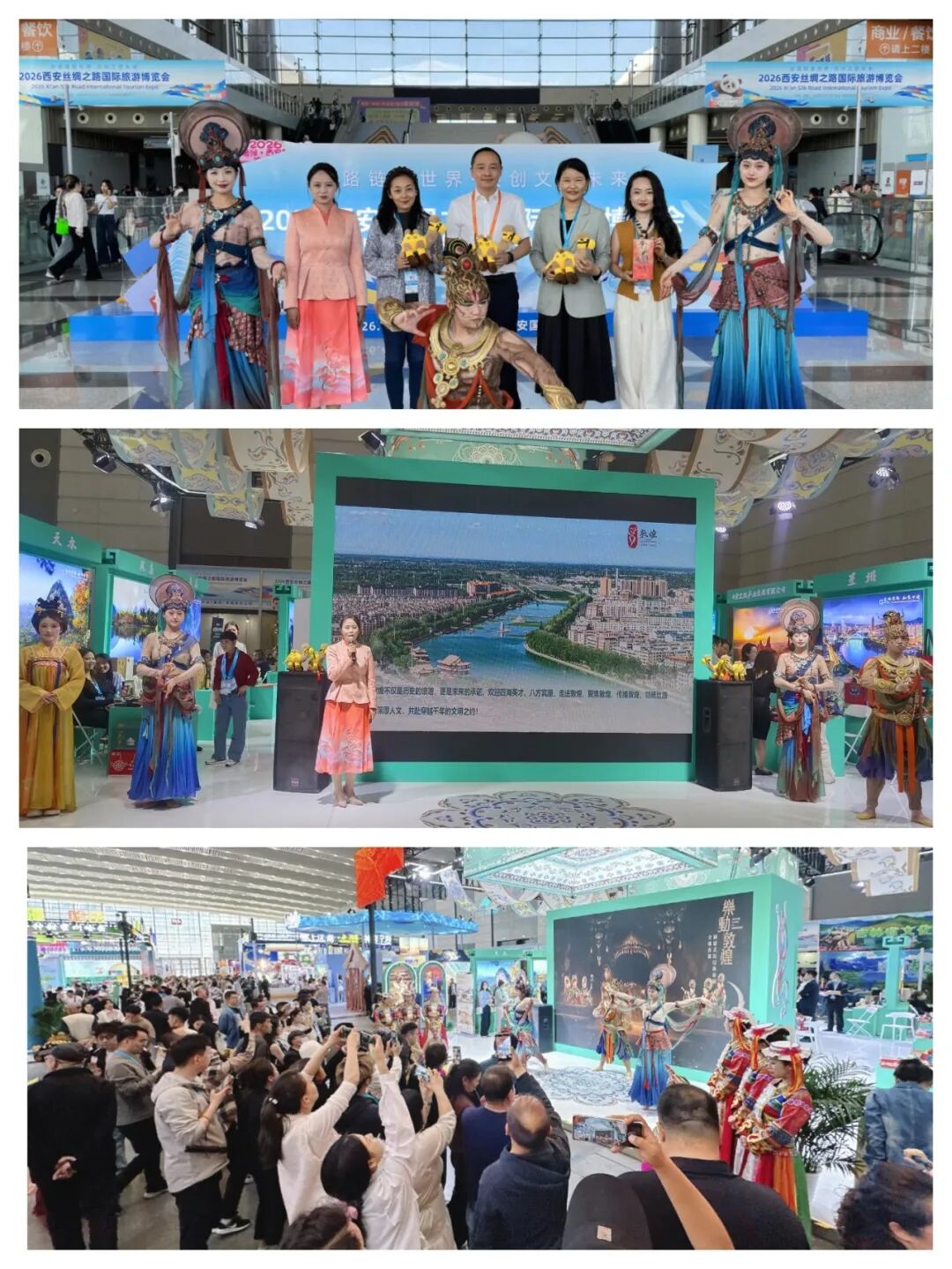 西安丝绸之路国际旅游博览会和“交响丝路·如意甘肃”品牌冠名列车首发启动仪式活动期间,敦煌推介官在甘肃展厅现场开展文旅资源专题推介,围绕莫高窟、鸣沙山月牙泉、玉门关、悬泉置等核心资源,重点推介精品旅游线路、惠民政策及会展研学产品,生动讲述敦煌故事,全面展示国际文化旅游名城独特吸引力,还开展了敦煌文旅知识有奖问答互动,赢得现场嘉宾广泛关注与好评。