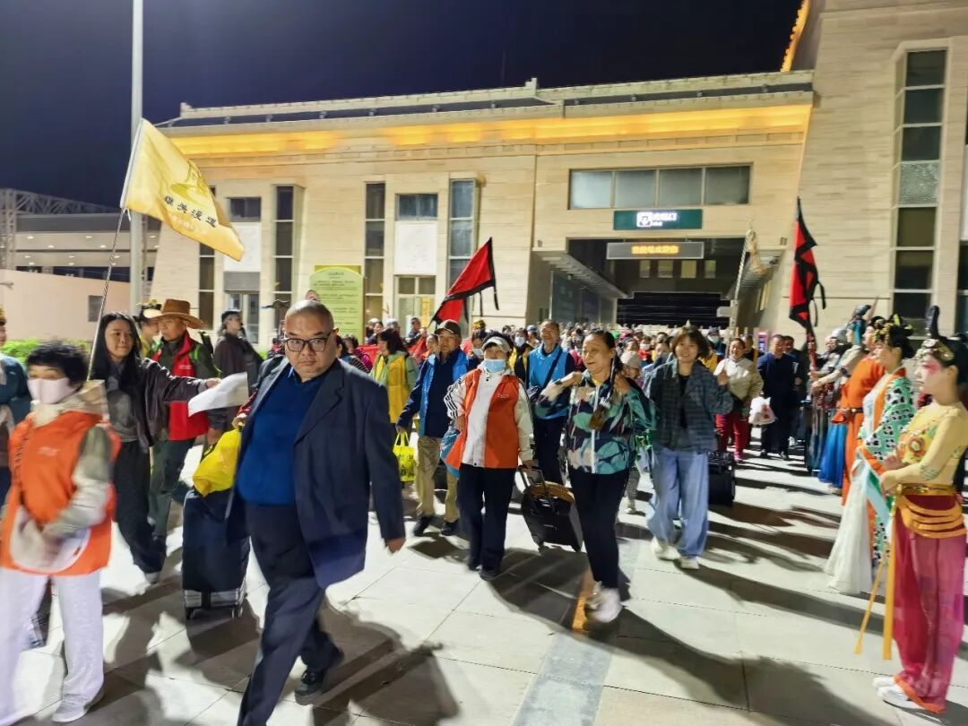 为迎接首批专列游客抵达,敦煌市文体广电和旅游局精心策划“从古都长安到千年敦煌”丝路主题迎客仪式,以浓郁的丝路风情、厚重的敦煌礼仪,为远道而来的客人送上专属礼遇,正式开启一场穿越千年的文化寻根之旅。