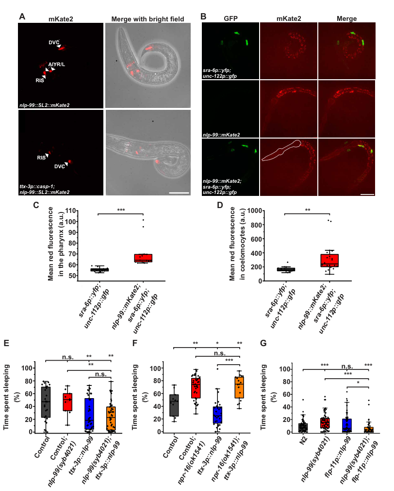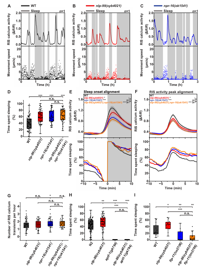 因此,NLP‑99/NPR‑16根据饥饿或饱食,双向调控RIS神经元,从而精确控制睡眠的开与关。