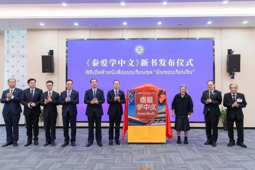 本套教材由北京大学与泰国专家联合编写,汇聚中泰两国优秀学者与一线教学力量,历经精心打磨而成。发布仪式上,诗琳通公主与中泰双方嘉宾共同为新书揭幕,见证这一中泰教育合作的重要时刻。