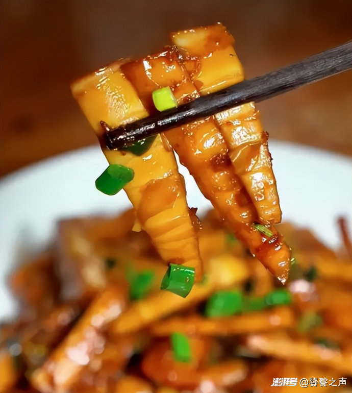 笋这家伙脾气超好,可盐可甜。想玩重口的?油焖它!重油重糖一顿操作,焖到色泽琥珀,浓油赤酱紧紧包裹着笋身,入口是霸道的咸鲜,咬下去却是咔嚓脆爽,反差感绝了。想走小清新路线?清炒就行,只需一点点盐,就能把笋本身那股清甜甘冽烘托得明明白白,是春天本春的味道了。