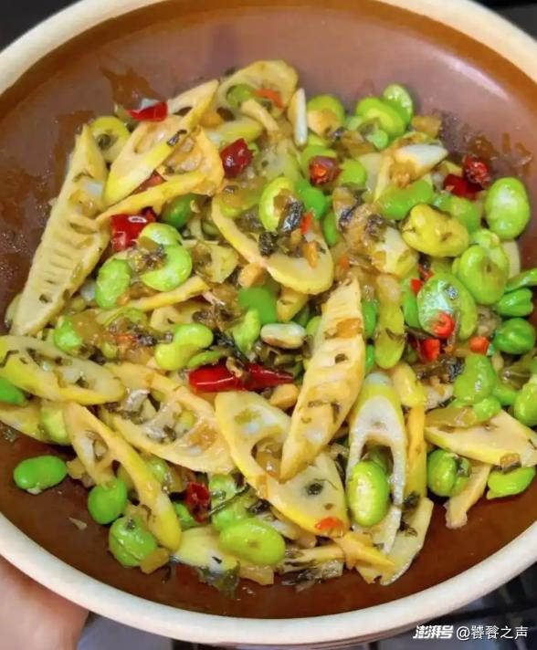 但要说我的私心最爱,那必须是春笋炒蚕豆。白玉般的笋切成薄片,碧玉般的蚕豆褪去外衣,露出胖fufu的豆瓣。热锅凉油,笋片先下锅煸出微微的焦边,再倒入蚕豆猛火快炒,盖上锅盖焖它一分钟。开盖的瞬间,哇塞,春天的气息直接糊你一脸!笋片脆嫩,蚕豆绵软,两种不同的“鲜”在嘴里碰撞,清爽又不单调,一口接一口根本停不下来。