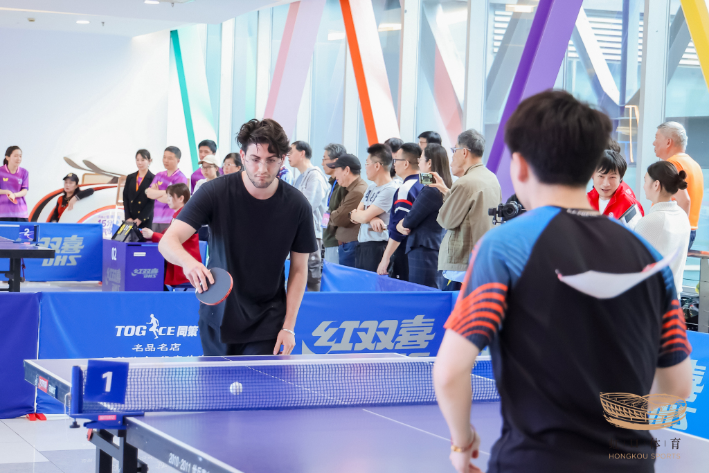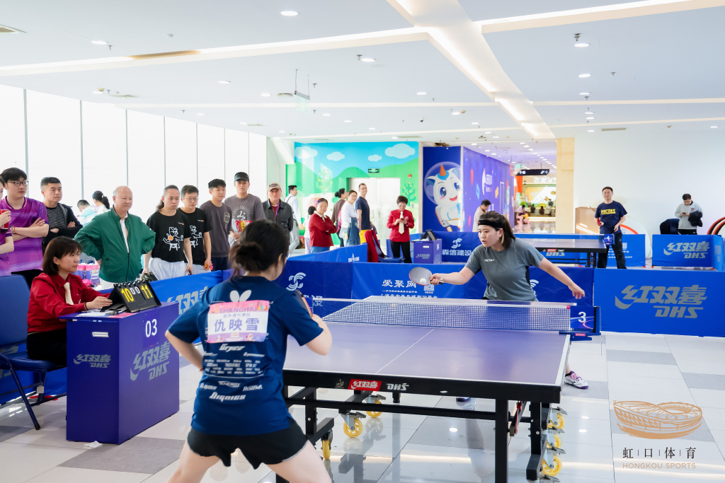上周末,上海终于摆脱了细雨绵绵,迎来了久违的阳光。午后的凯德虹口商业中心,阳光透过玻璃穹顶洒在临时搭建的乒乓球台上,小球在网上来回跳跃发出清脆的“乒乓”声,让商圈里原本的喧嚣显得格外不同。