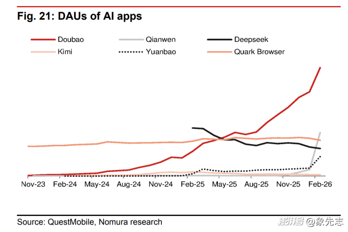 春节档阿里给千问App投入了巨量资源,财报里披露2月MAU已经超过3亿。但这目前应该还不足以动摇上面这个“双寡头”判断。