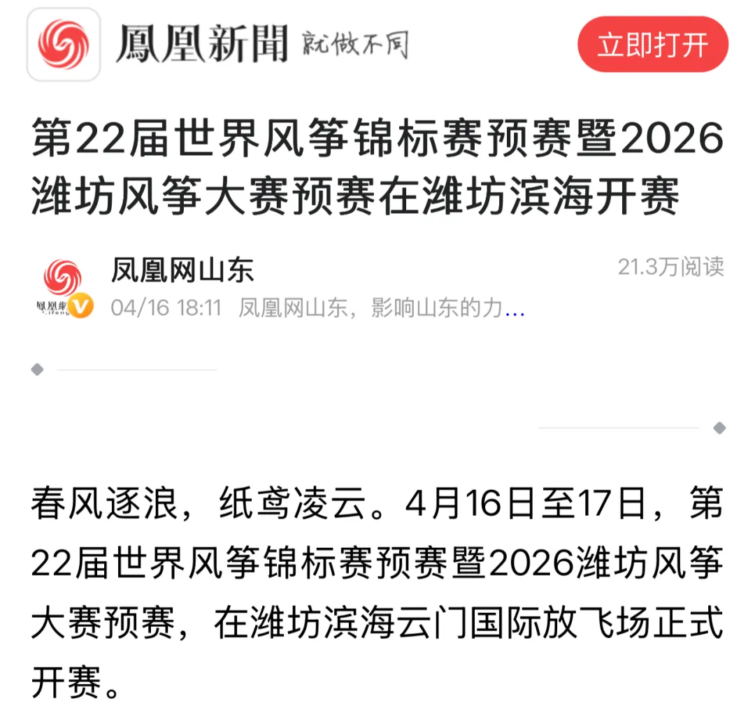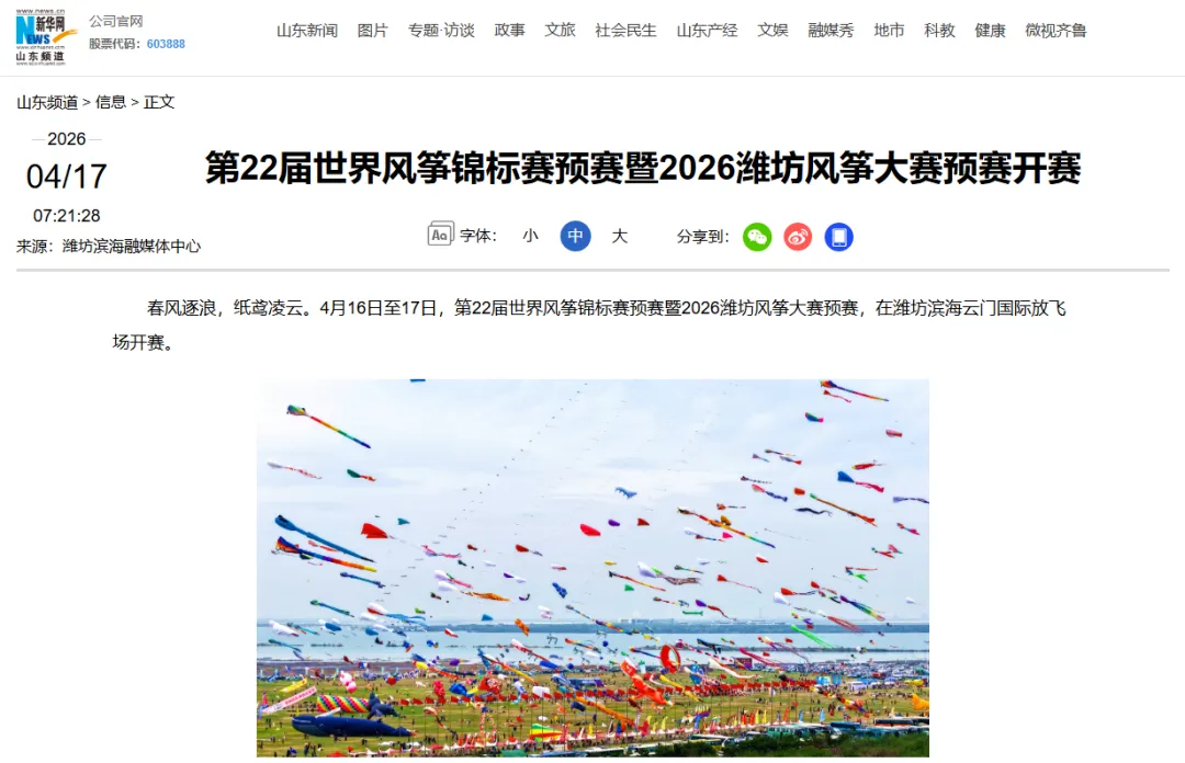 媒体的报道展现了潍坊作为风筝之都的魅力