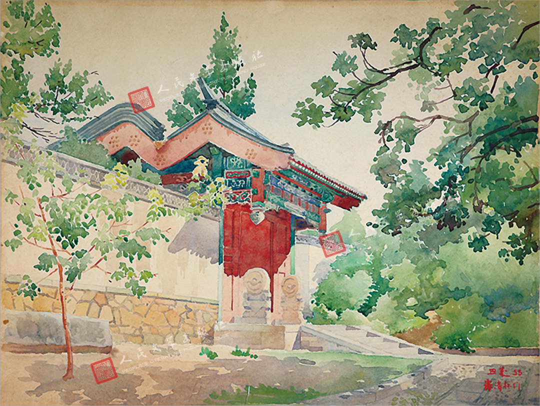 1955年,梁思成在颐和园养病期间所绘水彩画《谐趣园》系列之一