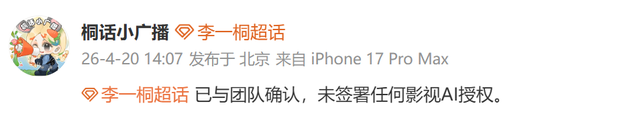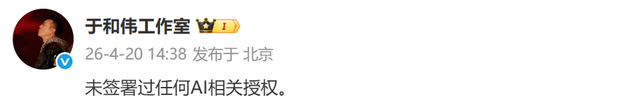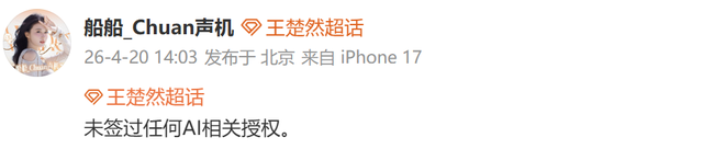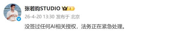 随后,张若昀、于和伟、李一桐、王楚然等多位艺人的工作室、后援会相关方面发布博文,否认签约AI相关授权。