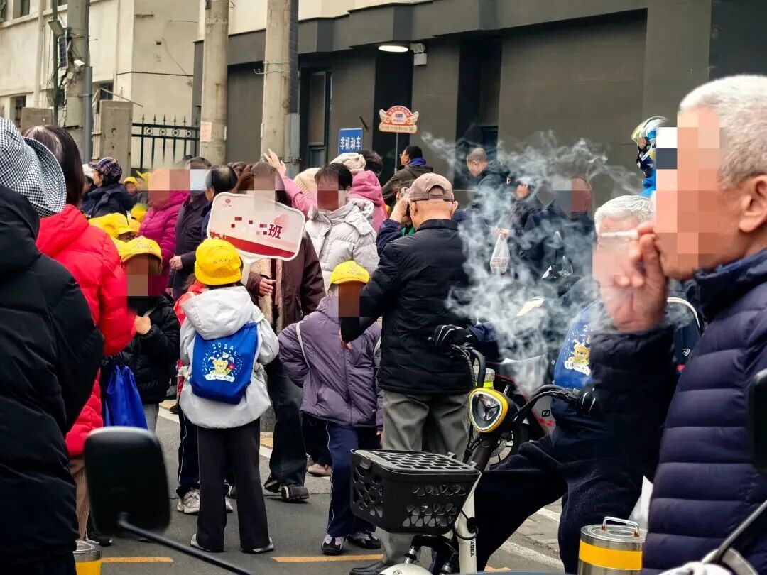 在一些学校门口,孩子们放学后被二手烟包围。来源:北京晚报