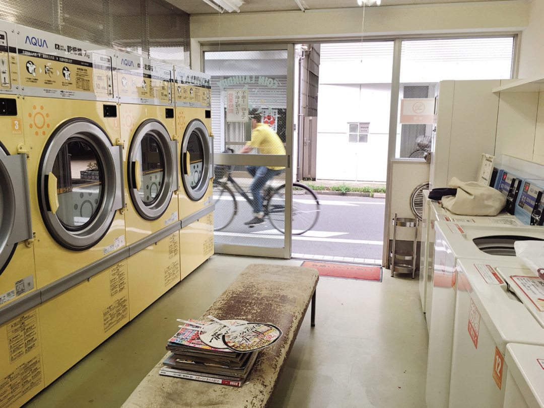 因为四畳半的房间里没法安装洗衣机,我平时都在附近的投币式洗衣间洗衣服。但我后来发现,家附近的钱汤把烘干费用设定为一百日元(约合人民币五元)八分钟,而独立洗衣小铺的价格是一百日元十分钟。这两分钟非常重要,少了之后厚一点的袜子无法彻底烘干,所以现在我一般都会直接去独立洗衣小铺。