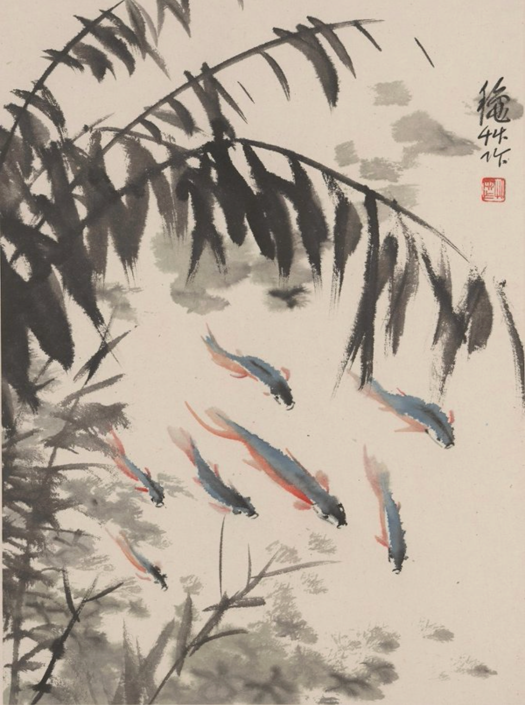 《花鸟册页-芦苇鱼塘》1982年
