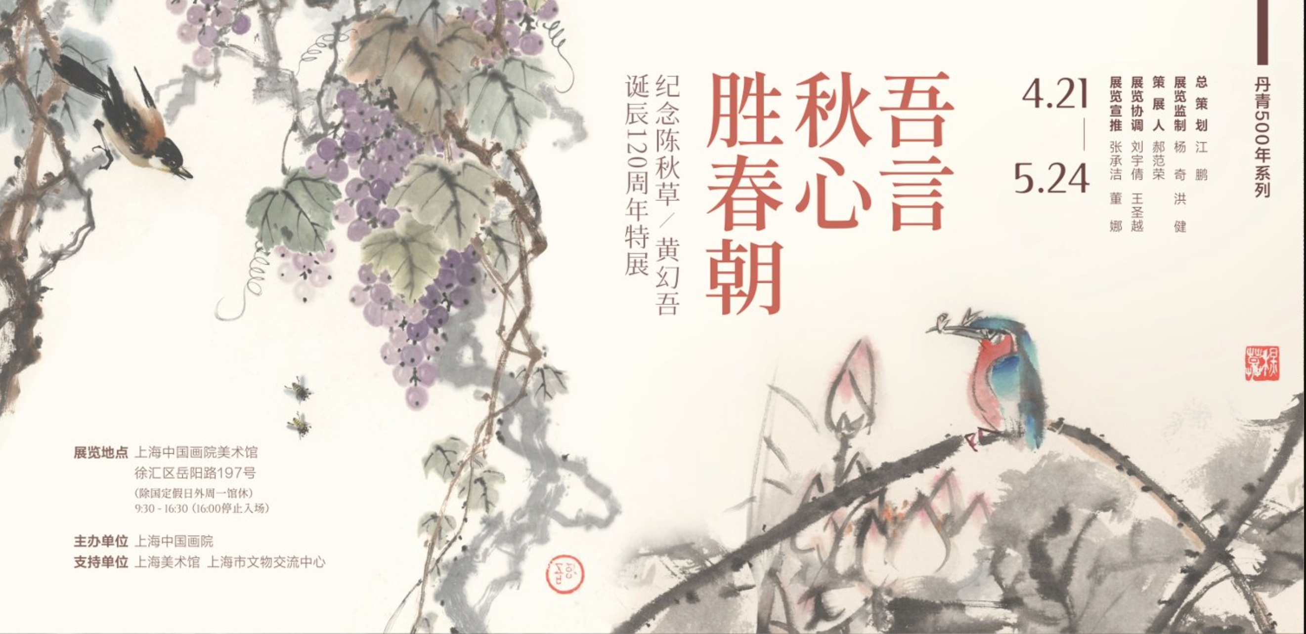 4月21日起,上海中国画院举办“吾言秋心胜春朝——纪念陈秋草、黄幻吾诞辰120周年特展”。展览遴选了两位画家艺术生涯中的八十余件代表作品,涵盖花鸟、山水等多种题材,呈现出多样的艺术风貌。