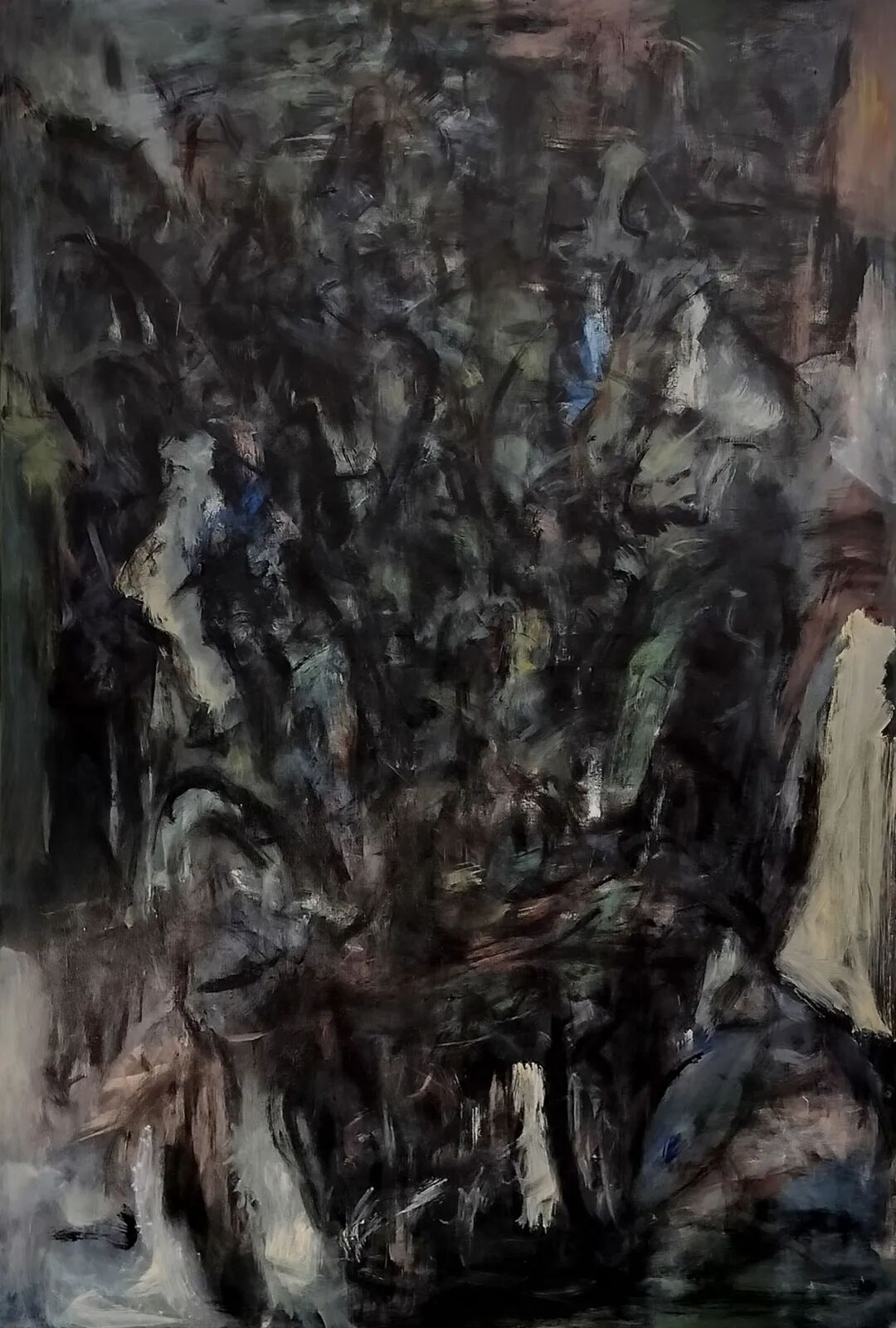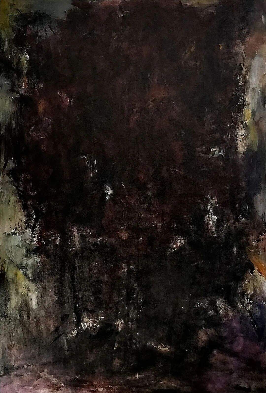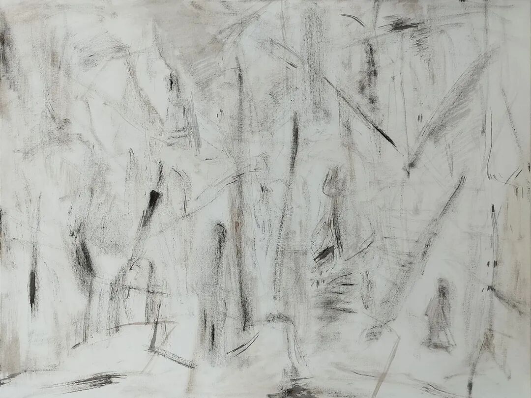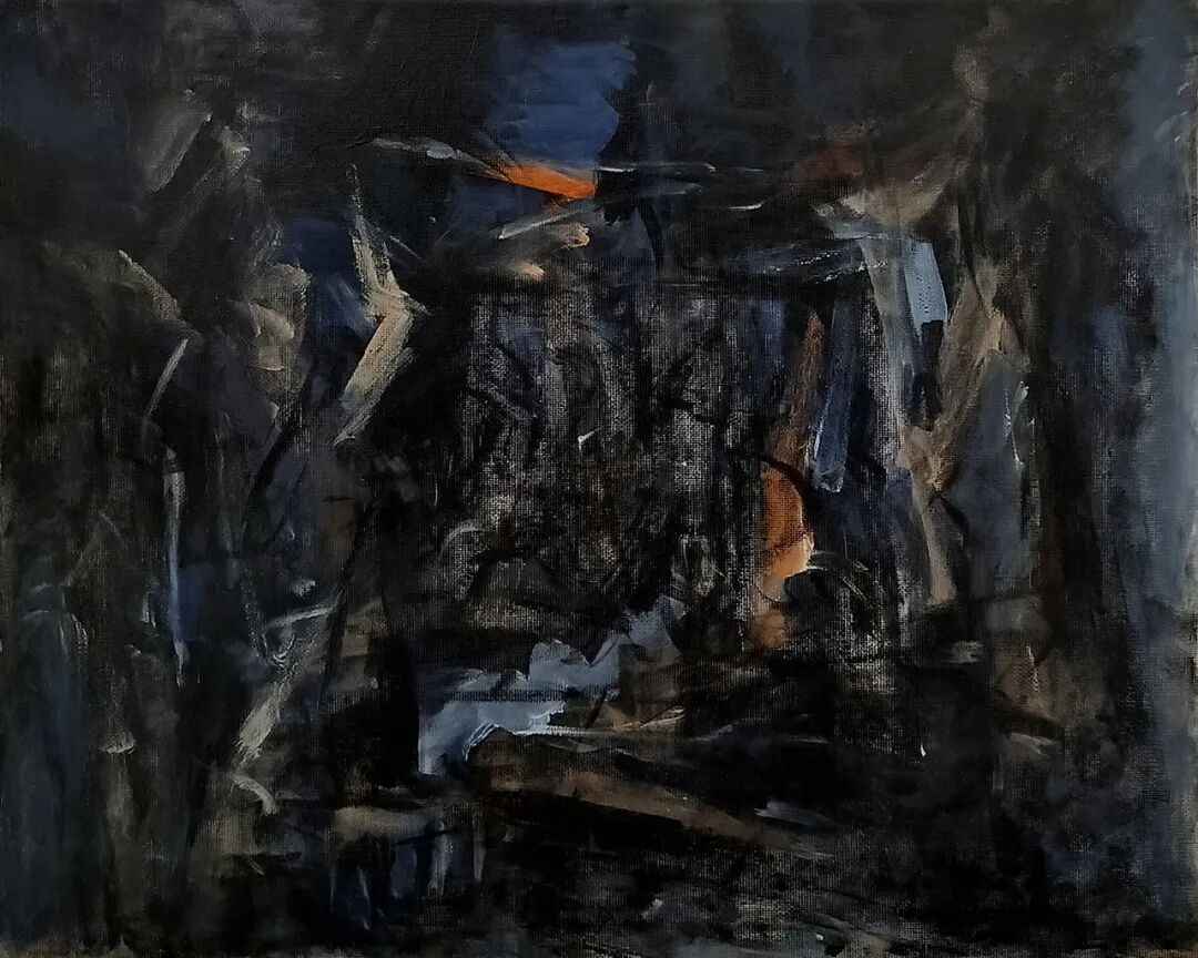 樊杰颖的绘画,是在一片幽深的墨域之中徐徐展开的。那近乎令人窒息的大面积黑墨,如暗夜般笼罩,将喧嚣的表象尽数压制,仅余一线或一丝的白光,成为沉默中的代言。这种视觉冲击力超出了一般的审美范畴,迫使观者重新审视绘画的本源。作品以表现主义的语言方式书写;以个体经验的思考从社会学角度切入,从而将观者拉入艺术家的情绪之中,在阴影处找寻生命的痕迹。