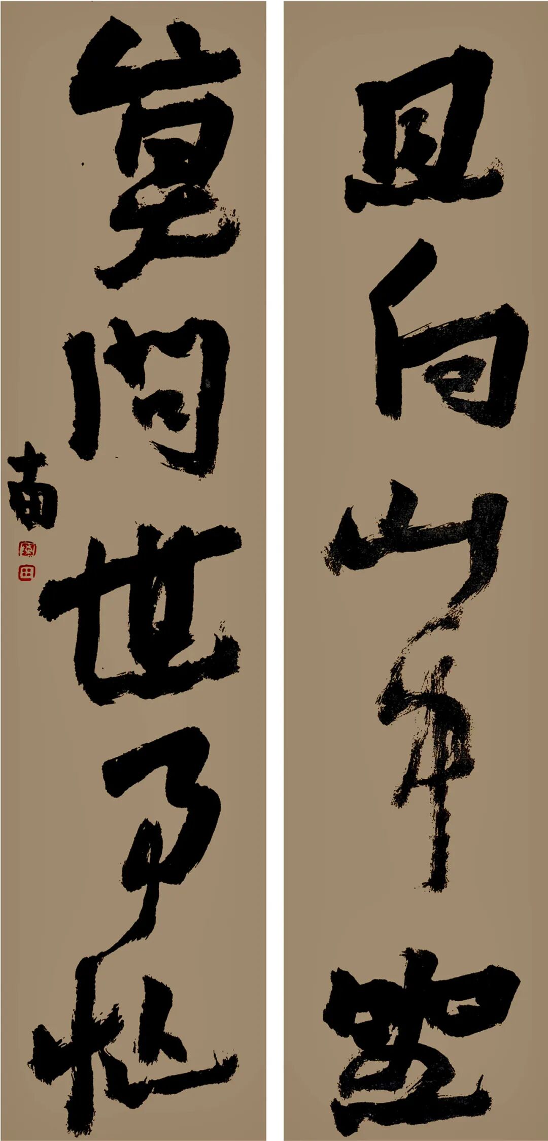 《且向 莫问》联-68x17cmx2-纸本水墨