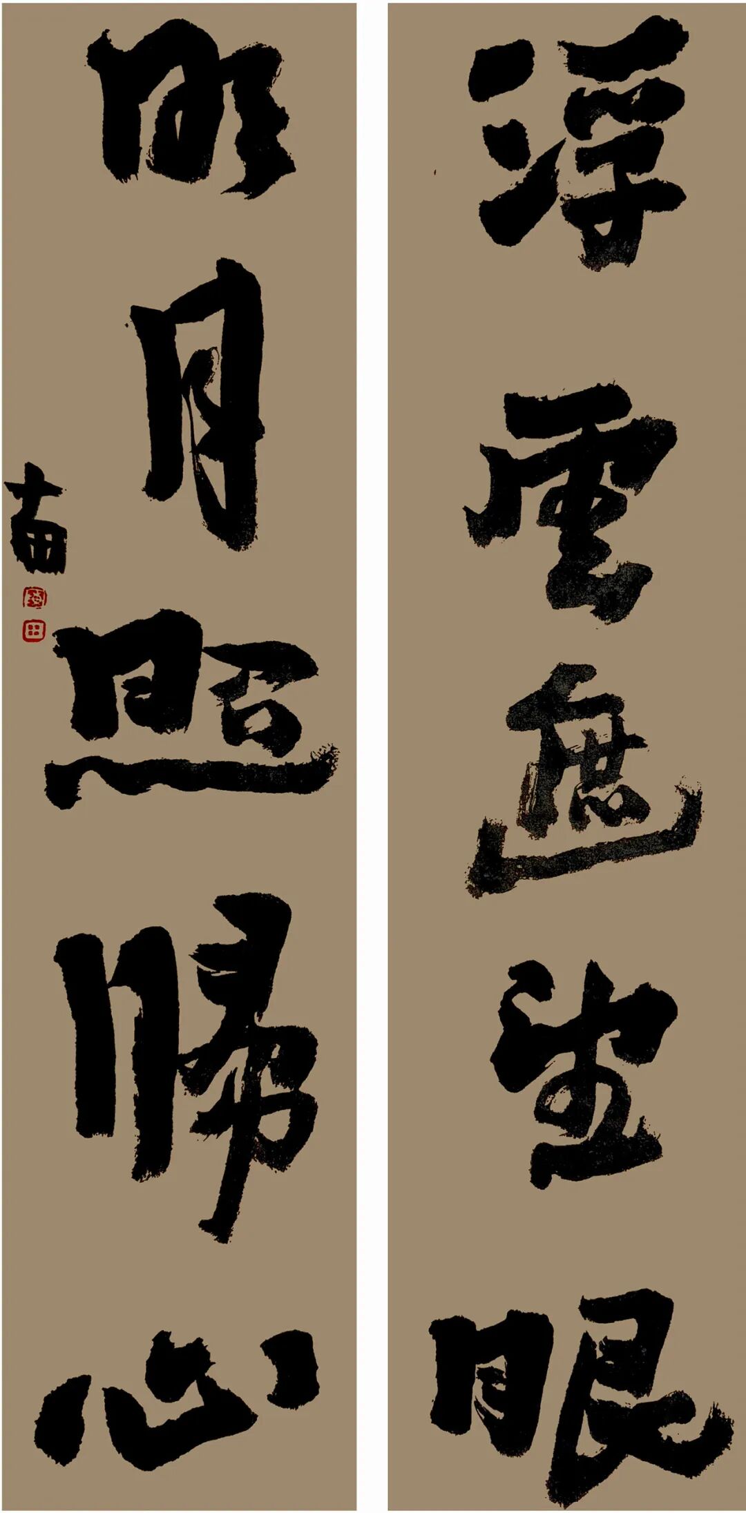 《浮云 明月》联-68x17cmx2-纸本水墨
