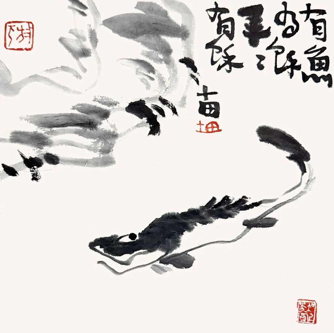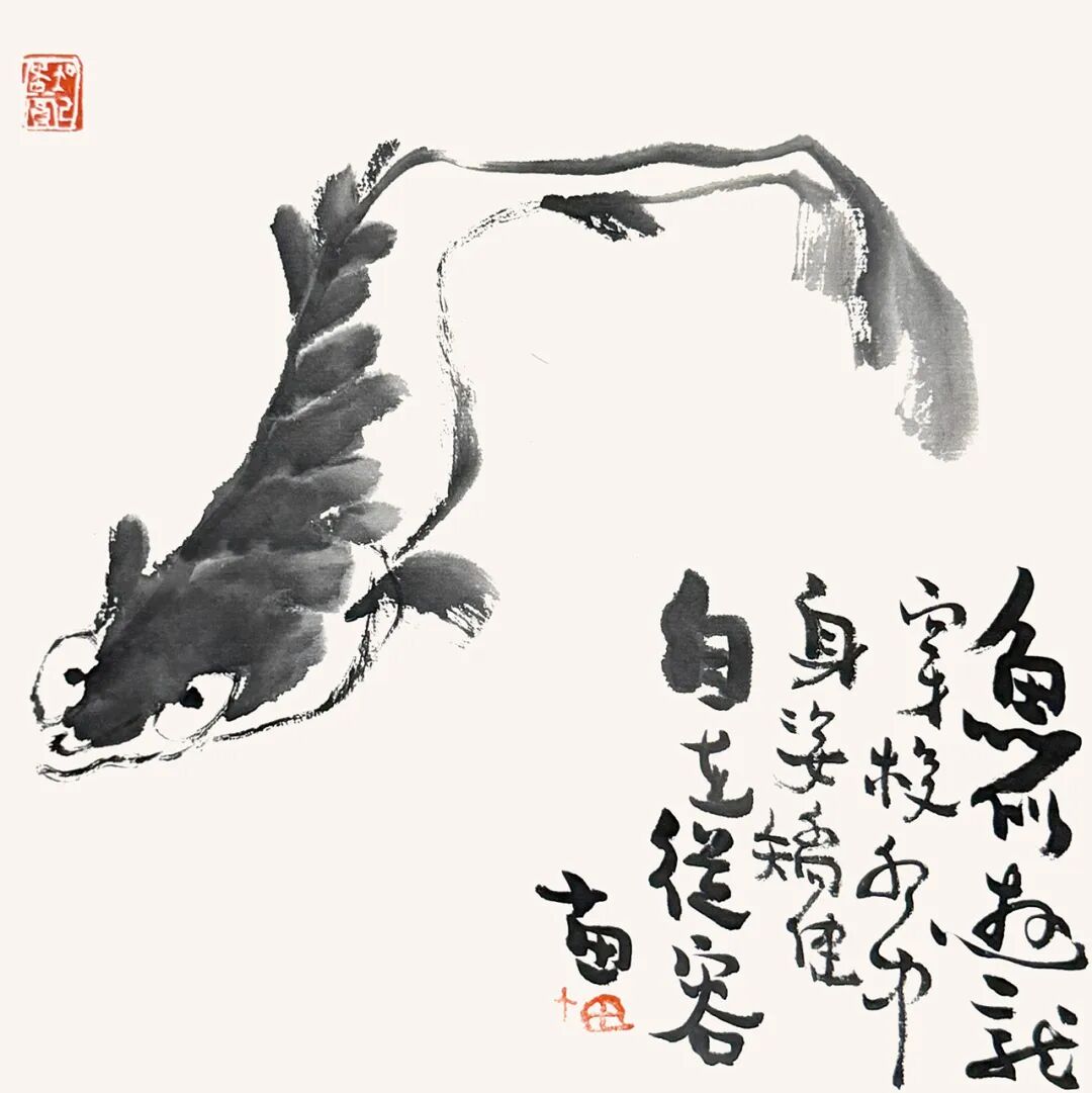 鱼似游龙-17x17cm-纸本水墨