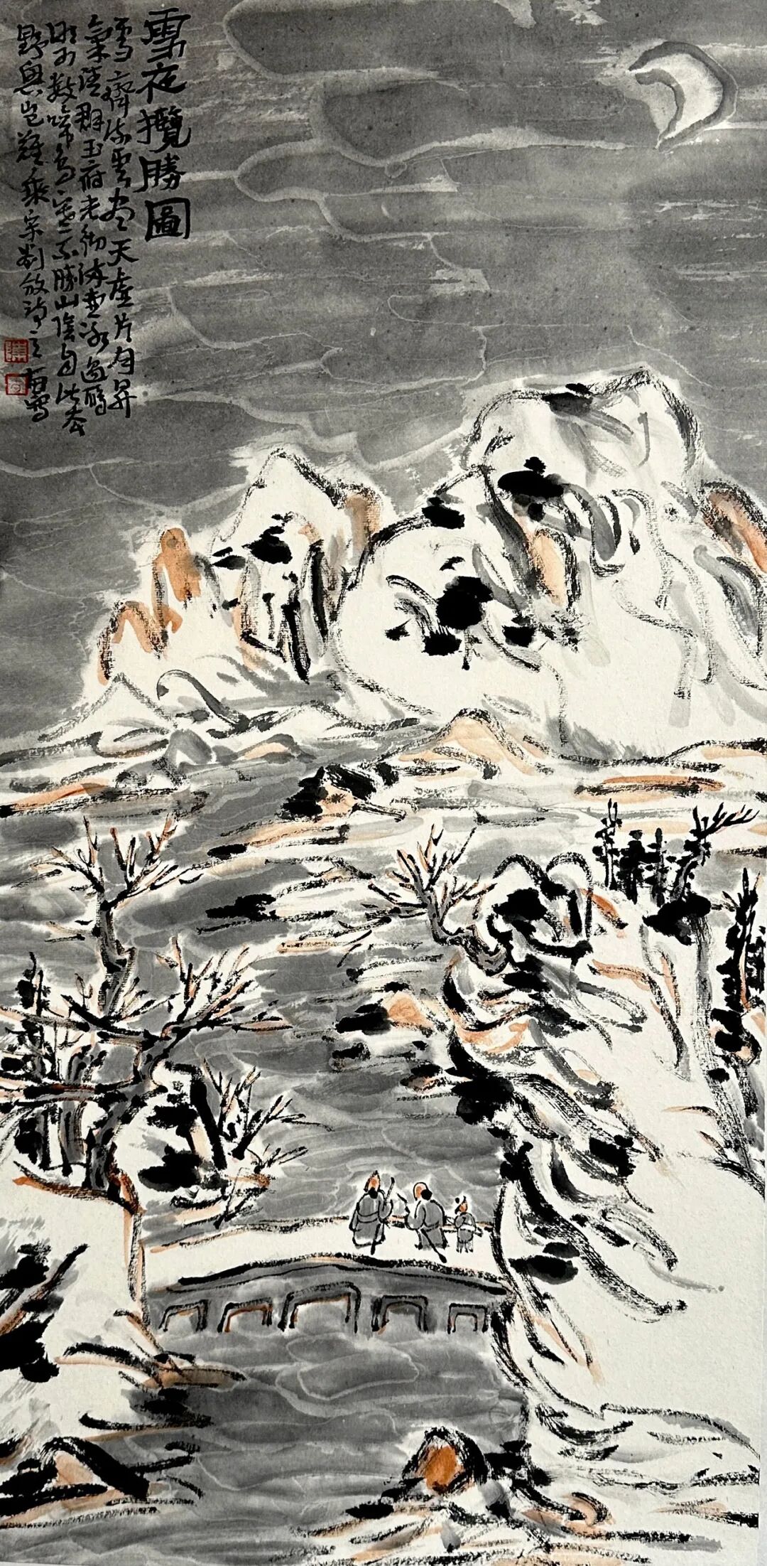 雪夜揽胜图-68x34cm-纸本设色