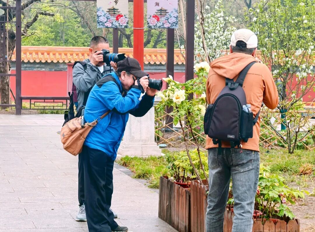 为丰富游园体验,牡丹文化节期间,“牡丹路”沿线设有多处主题花卉景观。南门区域构建“国色凝芳”主题景观,运用植物造景手法,结合地势起伏与留白层次,营造出开阔舒展的视觉效果。漫步其间,花香随风流转,满目国色与古建光影交织,让人在沉浸式赏花的同时,细细品味这座历史园林的庄重与典雅。