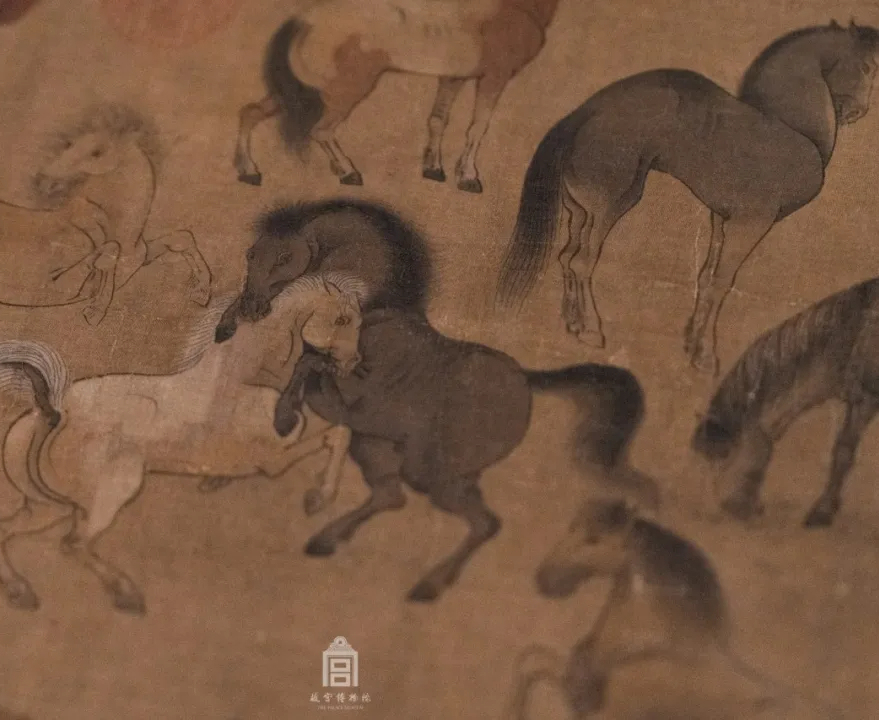 北宋大家李公麟的《摹韦偃〈牧放图〉》卷同样引人注目。图中沙阜连绵,河流隐现,142名牧官驱赶着1247匹官马自右向左行进,再现了盛唐官牧的磅礴气势。马匹骨肉停匀、形象生动,用笔自然写意。虽为临摹唐人韦偃之作,但李公麟的创造性处理极为突出。
