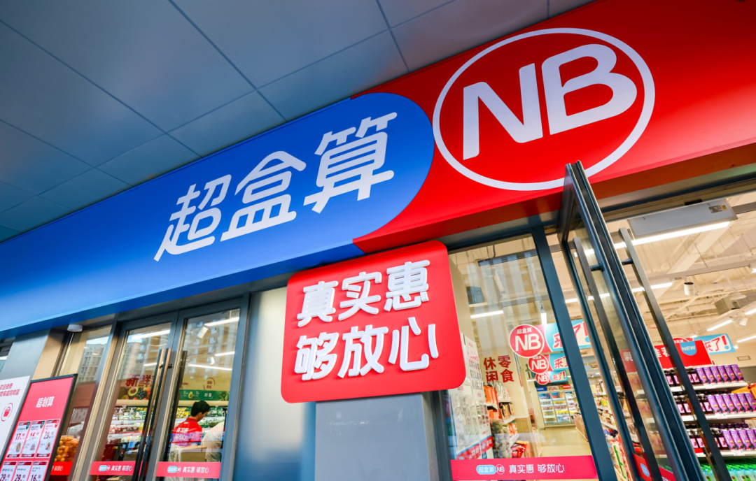 “超盒算”谐音“超合算”,直白传递“商品价格超级合算”的价值主张;“NB”代表“neighbor business”,意为“邻里商业”,精准聚焦居民15分钟便民生活圈,服务一日三餐消费需求。