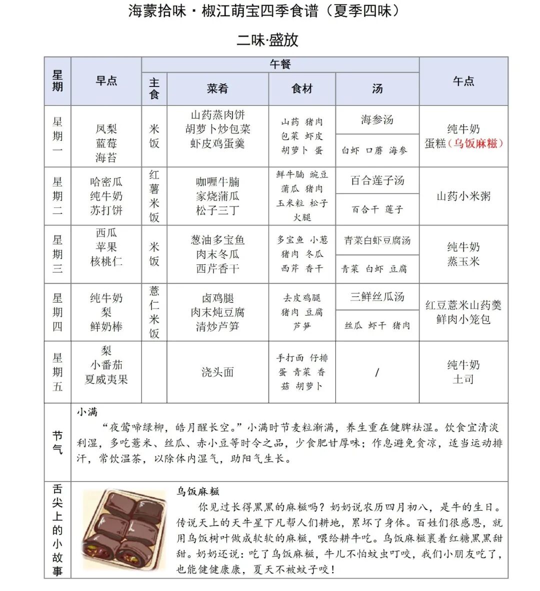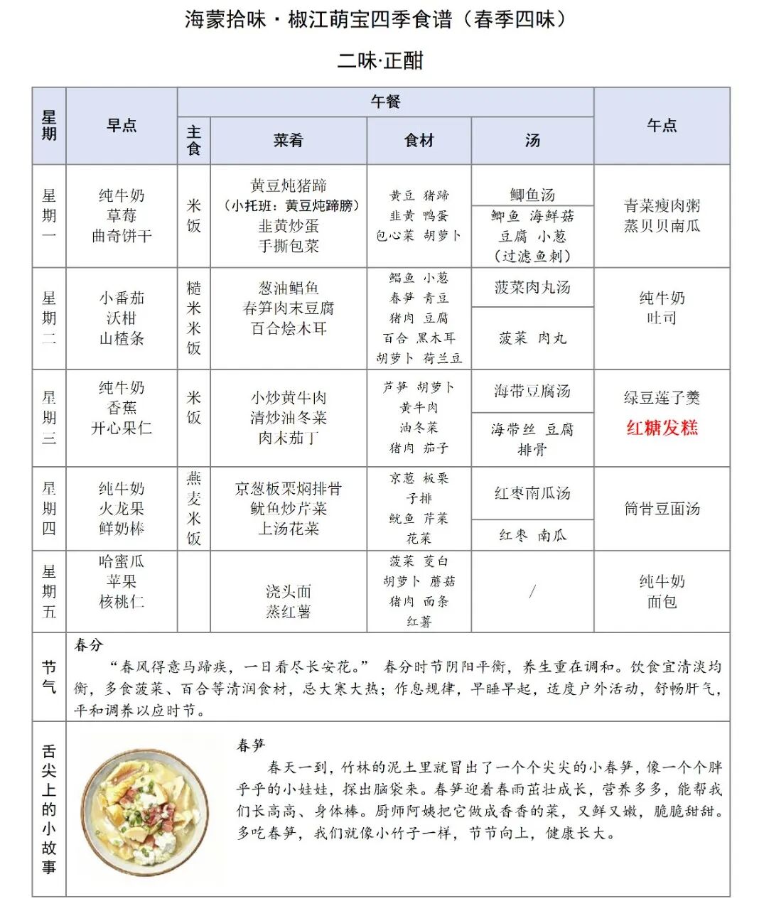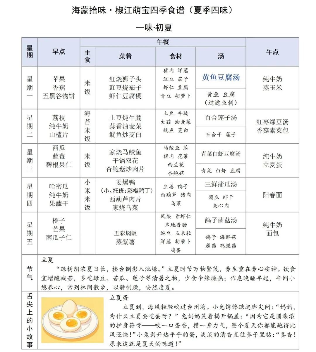 “糯叽叽、鲜哒哒”的本土风味,是这份四季食谱最具温度的亮点。椒江将本地饮食文化融入膳食设计,搭配本土美食小故事,让食育不止于营养,更成为传承家乡情怀的生动课堂。