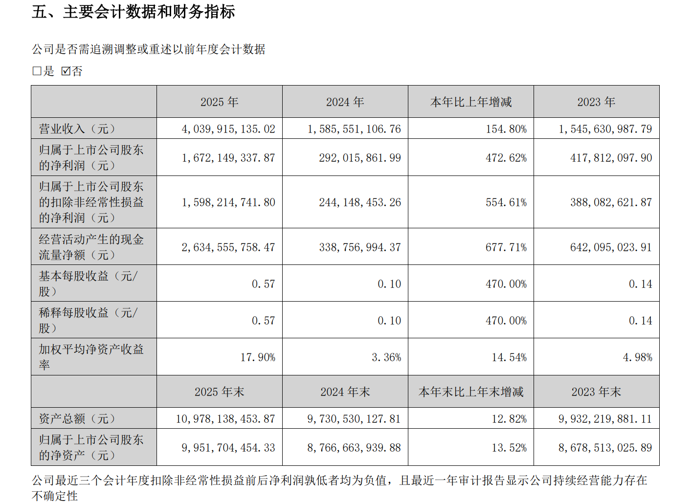 4月21日晚间,北京光线传媒股份有限公司(光线传媒,300251.SZ)发布2025年年度报告,报告期内,公司实现营业收入40.40亿元,同比增长154.80%;归母净利润16.72亿元,同比增长472.62%;拟向全体股东每10股派发现金红利1.50元(含税)。