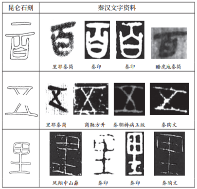 昆仑石刻与秦汉文字字形对照图(局部)