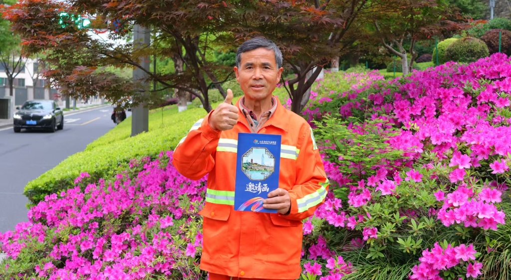 “最浪漫环卫工”用落樱当墨应援“苏超”,组委会邀其现场观赛