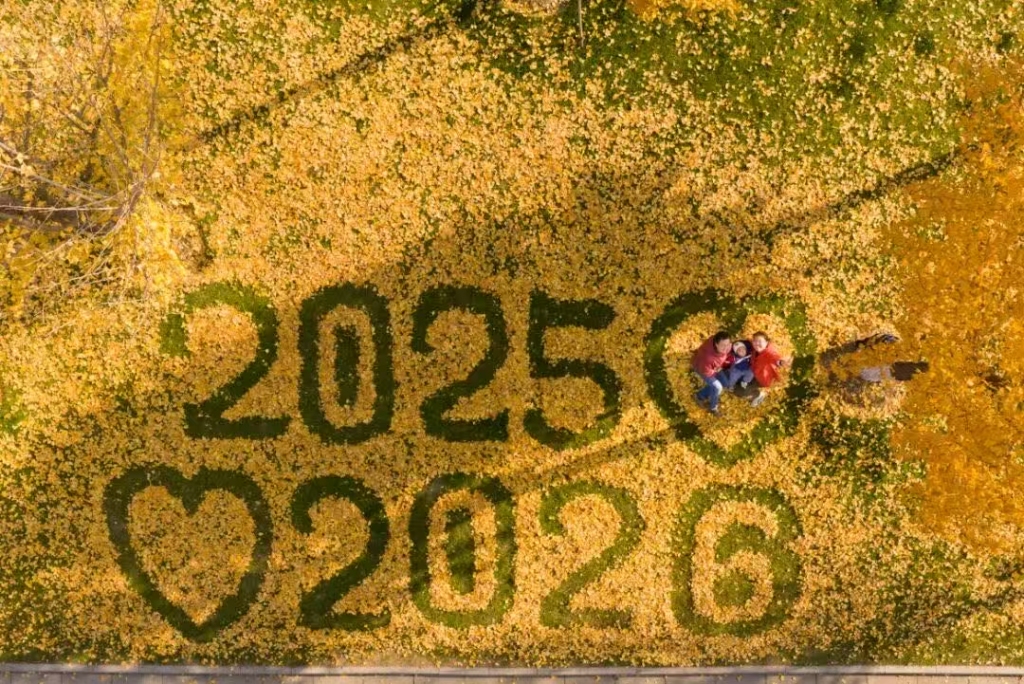 刘金顶是安徽阜阳人,2003年来南京打工,从事现在的工作已四五年。这不是他的第一个创意景观作品。去年12月,也是在自己管养的草坪上,刘金顶用银杏叶拼出“2025♡ ♡2026”,引得往来市民纷纷打卡。视频、照片发到社交平台后,网友既被他的创意打动,更欣赏他热爱生活、在平凡中找到乐趣的态度,称他为“最浪漫环卫工”。