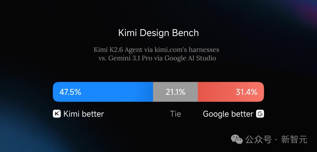 这些网站能做到这个水准,背后是K2.6模型加上Kimi Agent 模式 harness 的实力。超过了 Google AI Studio中的Gemini 3.1 Pro。