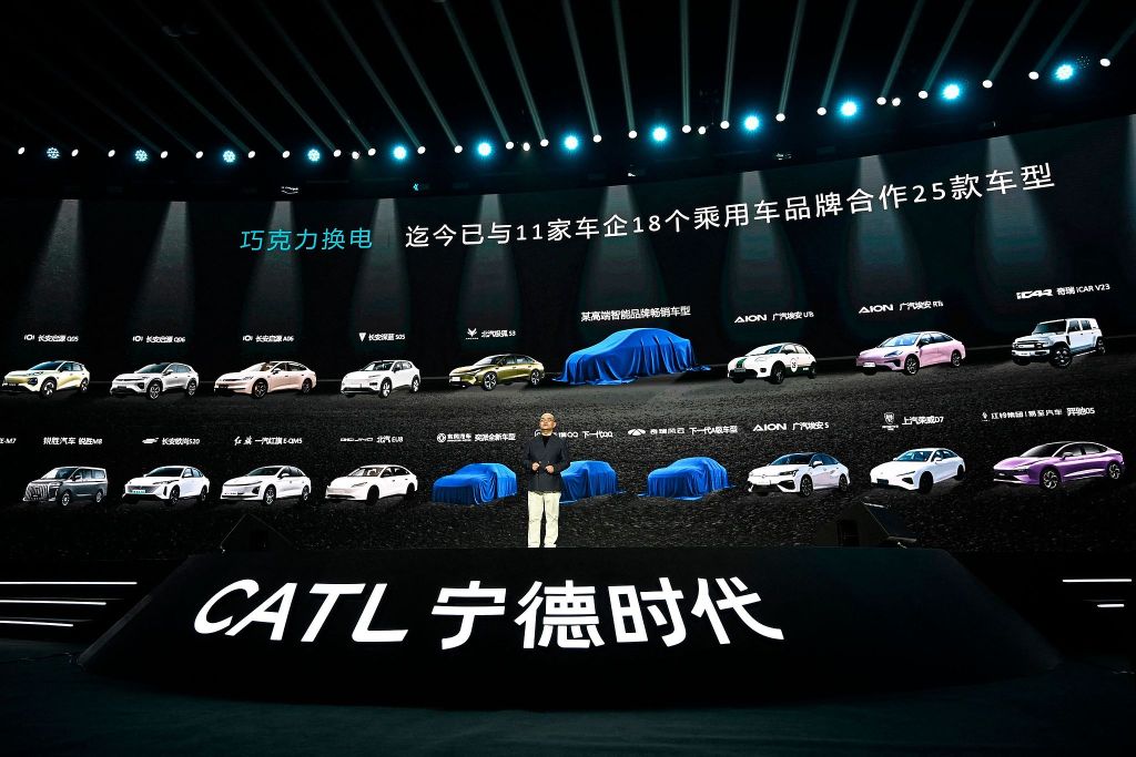 2026年4月21日,北京,中国电池制造商宁德时代(CATL)旗下换电业务子公司CAES总经理杨俊在北京车展前夕的CATL科技日活动上发言。视觉中国 图