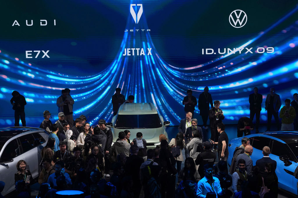 2026年4月21日,北京,大众集团在2026年北京国际汽车展前夕的媒体之夜活动中,与会者正在参观该集团的最新车型。视觉中国 图
