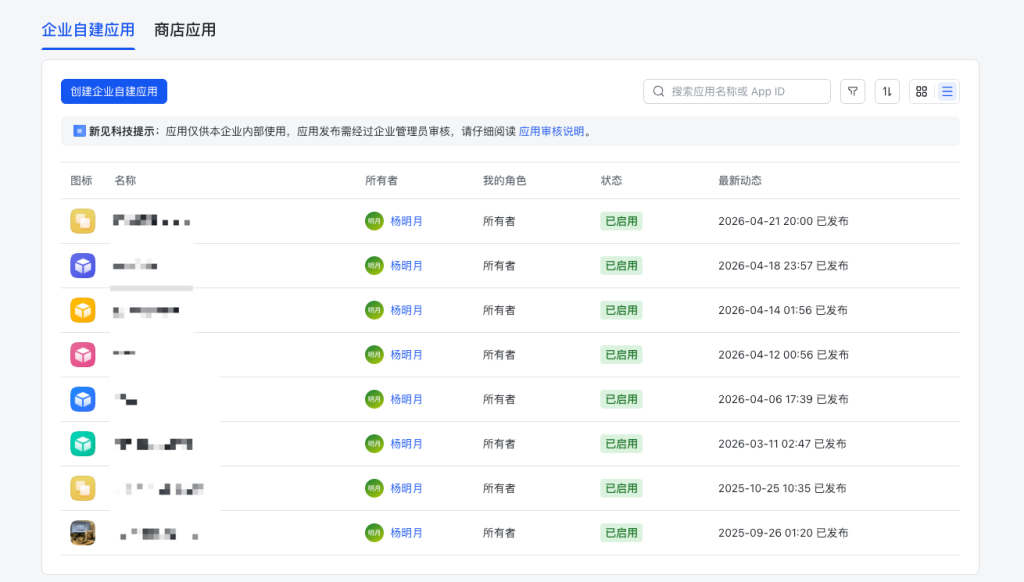 杨明月在办公平台上搭建了多个智能体应用