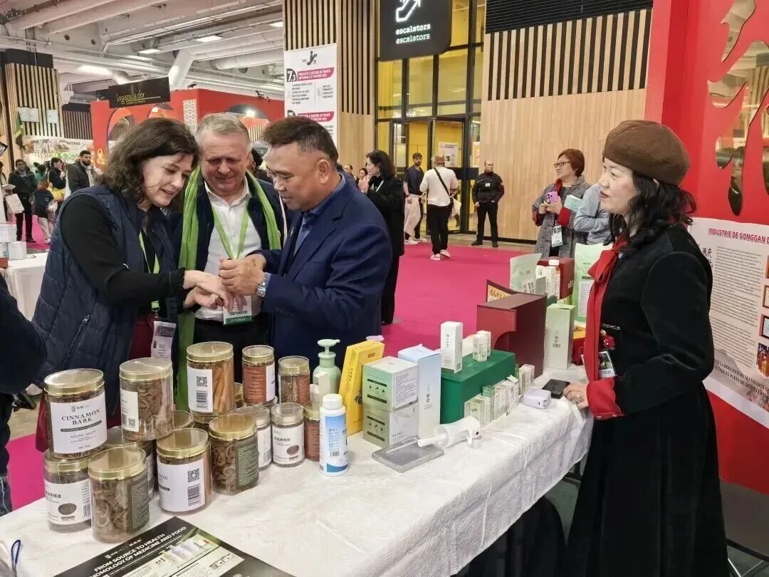 △德庆肉桂精油、肉桂茶、肉桂香包等产品在法国国际农业博览会上惊艳亮相。图源 德庆发布
