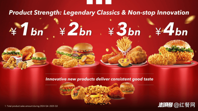比如肯德基的葡式蛋挞,自20多年前首次进入内地市场以来,一直是其招牌单品。百胜中国投资者日会议资料显示,2024年Q4到2025年Q3,肯德基仅凭蛋挞就能创造至少30亿元的营业额。