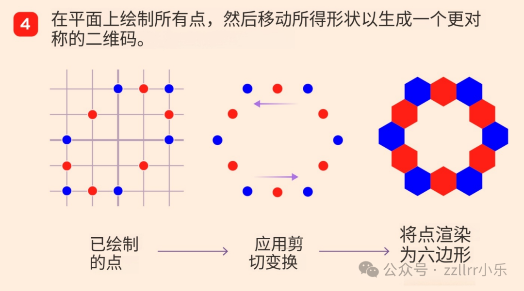 绘制点 → 施加剪切变换 → 将点渲染为六边形
