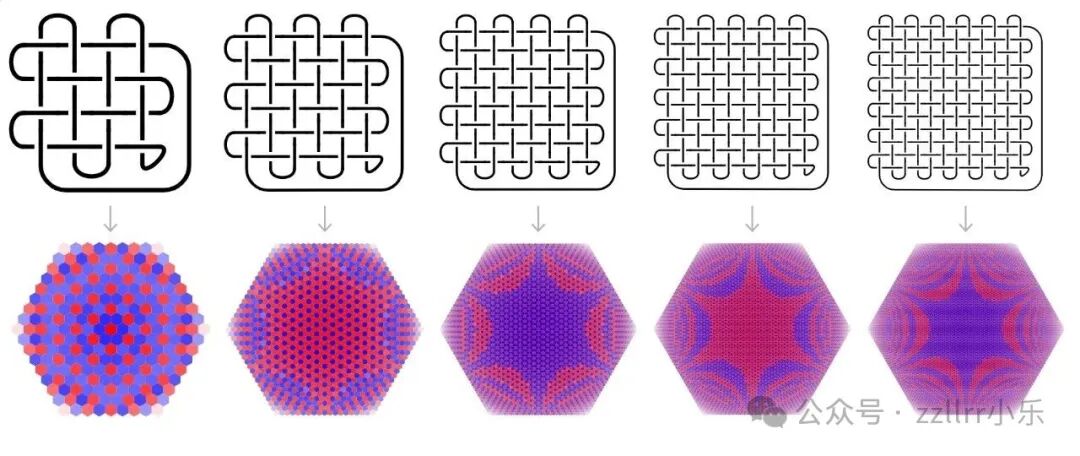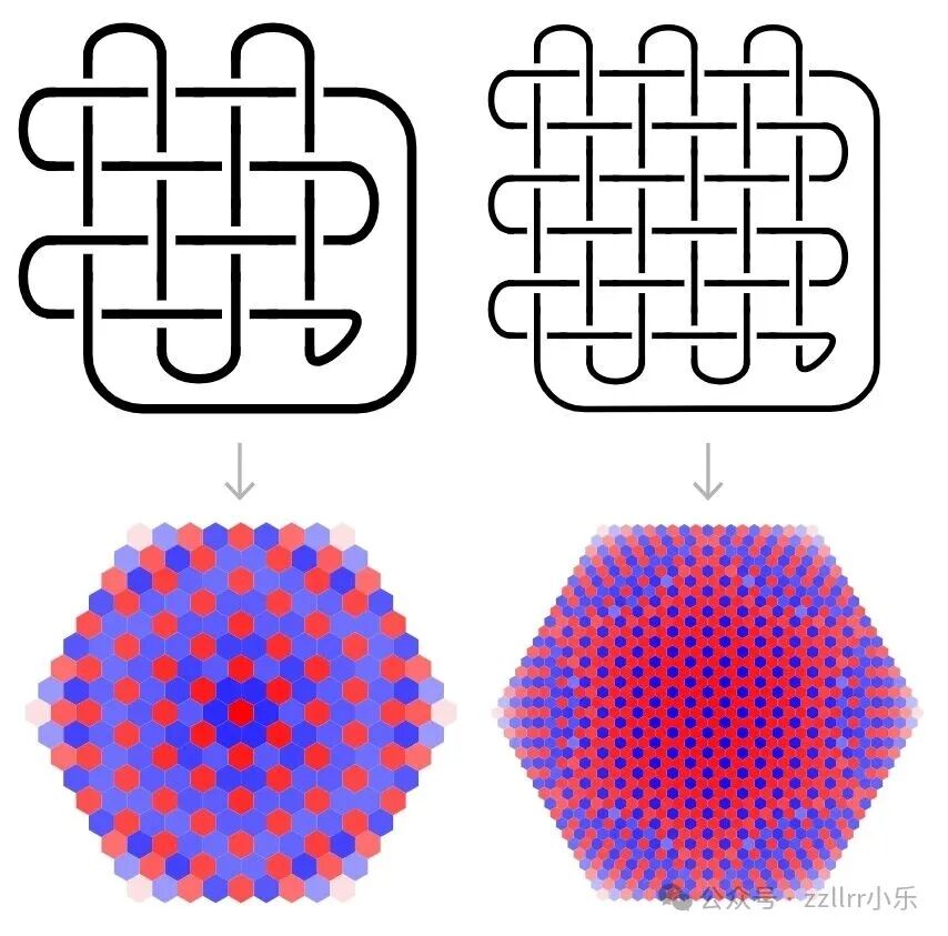 对于每个纽结,这个不变量会输出一个彩色的六边形 “二维码”,其对称性与精致细节堪比雪花。“输出结果美得惊人,变化多到难以置信。” 不列颠哥伦比亚大学的利亚姆・沃森(Liam Watson)说,“它仿佛来自另一个世界。”