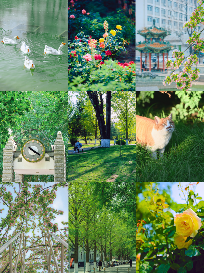 春日的色彩格外耀眼,红是热烈,蓝是温柔、漫步校园中,满眼皆是新绿。走出去吧,我们是新的春天。