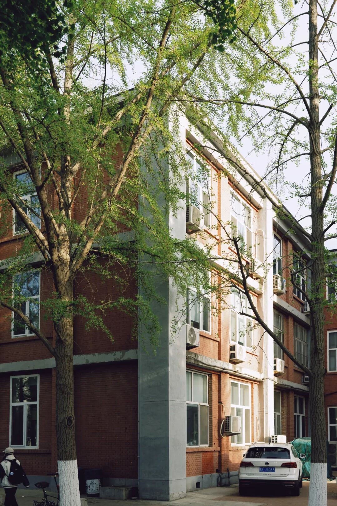 走在校园中,随处可见棕色的建筑,与生机盎然的绿色交织在一起,沉稳的建筑间,处处透着清新的绿色,格外舒服。