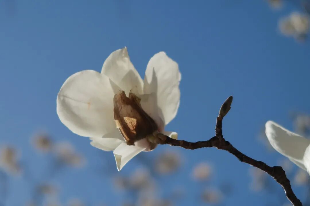 在校园里一抬头,就看见了这一簇簇花朵缀在枝上。白的干净、白的透亮,让人心旷神怡,感觉生活也明亮了起来。