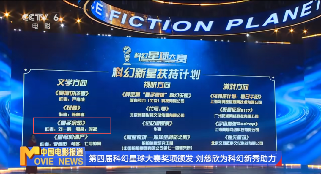 CCTV6报道第四届科幻星球大赛奖项颁发现场