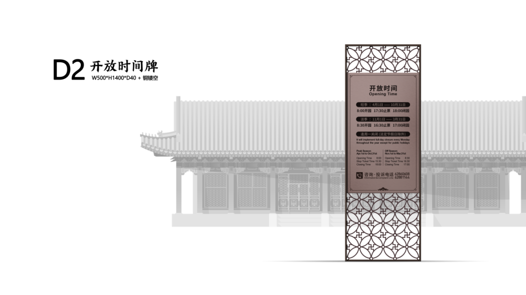 团队锚定三大设计原则:国家气派——彰显皇家底蕴,打造国际友好的导览体系。尊重传统——延续现有应用图谱,贴合园林历史风貌。系统专业——遵循国家规范以模数化管理实现标准化设计
