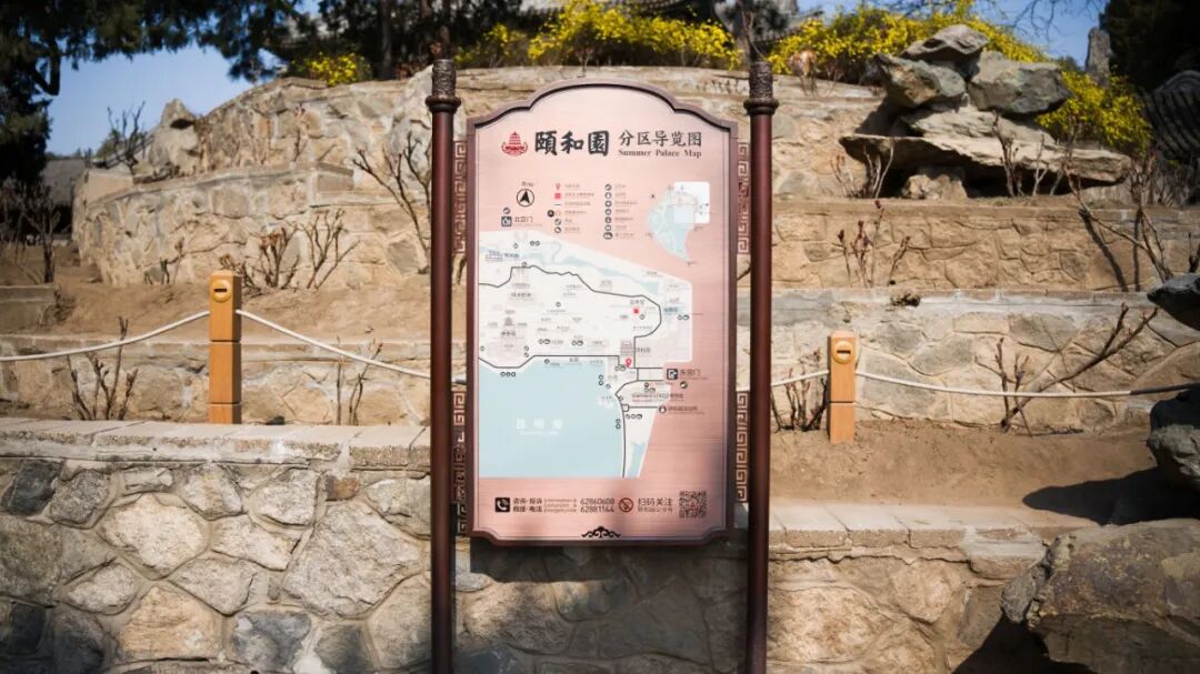 这些清晰雅致的指示牌,整套焕然一新的视觉导览,出自于北京交通大学建筑与设计学院第八工作室设计完成的“颐和园导向标识系统”