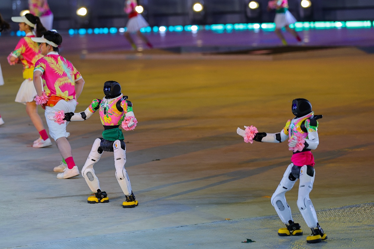 4月22日晚,第六届亚洲沙滩运动会开幕式在三亚亚沙公园举行。图为机器人在开幕式上表演。(第六届亚洲沙滩运动会组委会供图)