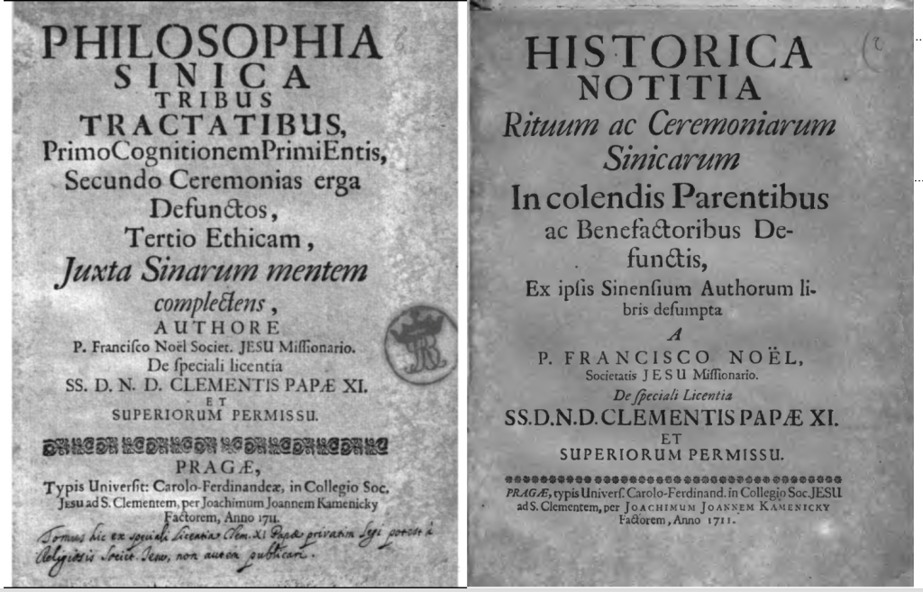 17-18世纪的礼仪之争,是中西方交往过程中的重要文化事件,主要围绕祭祖与祭孔展开,本质是中国的礼仪风俗是否与基督教教义相容的争论。而《礼记》作为古代中国礼之载体,自然成为关注的焦点,为了证明自己观点的正确性,他们不约而同地回到中国经典中寻找依据。其中代表为卫方济(François Noël, 1651-1729)和刘应(Claude de Visdelou,1656-1737)。卫方济在其著作《中国礼仪的历史记录》(Historica Notitia Rituum ac Ceremoniarum)和《中国哲学三论》(Philosophia Sinica tribus tractatibus)中大量援引《礼记》的条章内容来维护利玛窦路线。而刘应则提出不同看法,认为中国祭祖祭孔等礼仪属于偶像崇拜,并在1710年将《礼记》译为拉丁语,名为《中国礼仪〈礼记〉篇章:郊特牲、祭法、祭义、祭统》(Ritualis Sinensium Li-Ki capita,Kiao-Te-Seng;Tci-fa;Tci-y;Tci-tum)。现藏于梵蒂冈图书馆和葡萄牙国家图书馆,厚达600余页,文中常出现汉字,依据汉字形态,可以推断该译本应是刘应独立所作,每段文本后有释义和注解。刘应共计摘译18章,并针对《郊特牲》、《祭法》、《祭义》、《祭统》进行了全译,并将这四章置于开篇,打破了源文本的章节排列,这显然是出于译者目的,但似乎是出于不满,或是对刘应译介《礼记》毫不知情,其他耶稣会士较少谈到该译稿的存在。