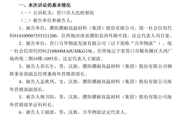 4月24日晚间,濮耐股份(002225.SZ)发布公告称,公司近日收到辽宁省营口市人民检察院出具的《起诉书》。